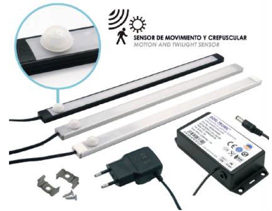 | KCX2X0300612C | 3000 | ![]() | R = FUENTE ALIM. POWER SUP B = BATERIA BATTERY | KIT ILUM. 2 PERFILES LED 12VCC 3W 2 LED BARS LIGHTING KIT 12VDC 3W | |