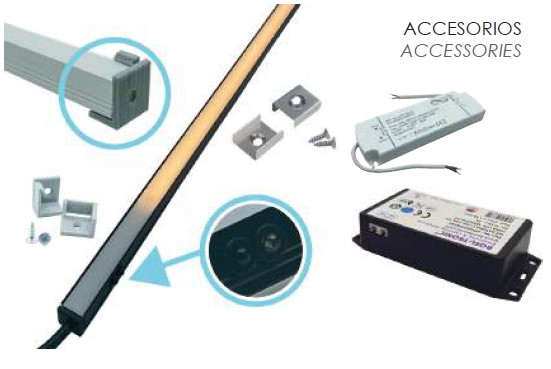 | CÓDIGO CODE | PERFIL LED LED PROFILE | ALUMINIO ALUMINIUM | CM | VCC VDC | 4,8W/M | POS/Nº SENSOR | SENSOR | ºK |